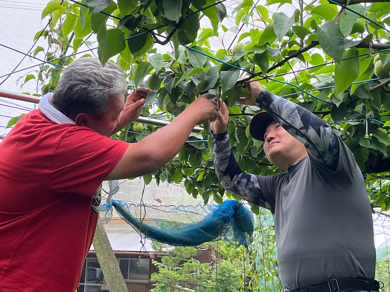 本当は地元の岬町で就農しようとしたが、新規就農者が多く来年になってしまうとの事を言われたので支援センターに相談したところ、一宮町の方が高齢化が進み梨農家が年々減ってしまっていると聞いて、自分が少しでも力になれるのならやってみようと思い、隣町の一宮町に決めました。