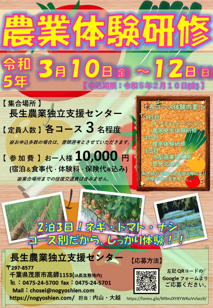 来月、3月10日㈮~12日㈰開催!短期農業体験研修の締切が明日です💦